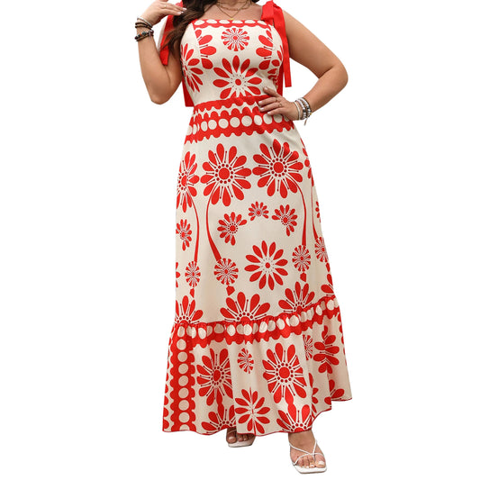 Elegant V-Neck Maxi Dress with Ruffle Hem and Adjustable Spaghetti Straps Summer Beach Boho Floral Print Dress