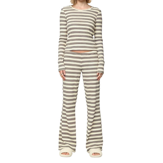 Women s Cozy Spring Pajama Set with Long Sleeve Striped Top and Wide Leg Pants Elastic Waist Lounge Wear 2 Piece Set for