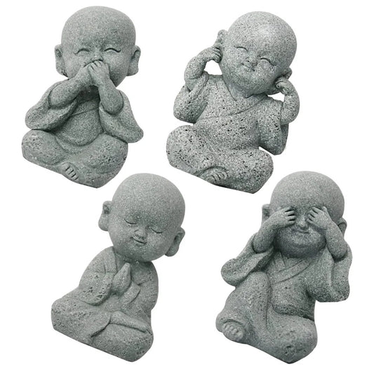 4 Pcs Miniature Baby Buddha Statue Ornament Zen Garden Monk Sculptures Sandston
