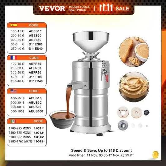VEVOR 15Kg/H Peanut Butter Maker 1100W Electric Commercial Walnuts Nuts Stuff G
