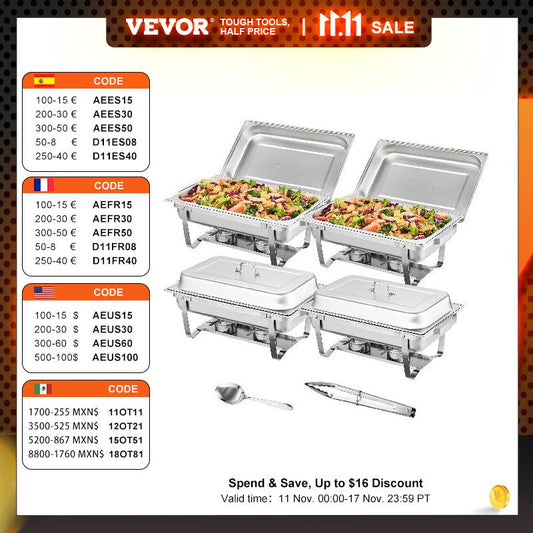 VEVOR 8QT 2 Pack ChaFolding Dish Buffet Set Stainless Chafer w/ 2 Full & 4 Half Si
