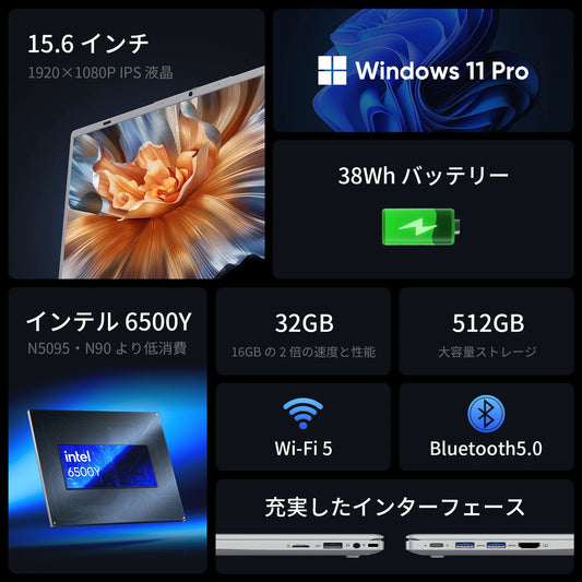 Laptop Computer 15.6 inch FHD intel Pentium Gold 6500Y up to 3.4GHz 32GB RAM 512GB SSD WiFi5,USB-C Business and Student Laptops