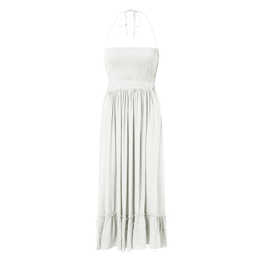 Bandage Backless Maxi Dress Halter Draped Long Dress White Sleevel