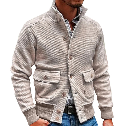 Mens Autumn And Winter Fashion Casual ButtonSolid Pocket Hatless Sweater Coat Jacket Outdoor Windproof Solid Color Simple Jacket