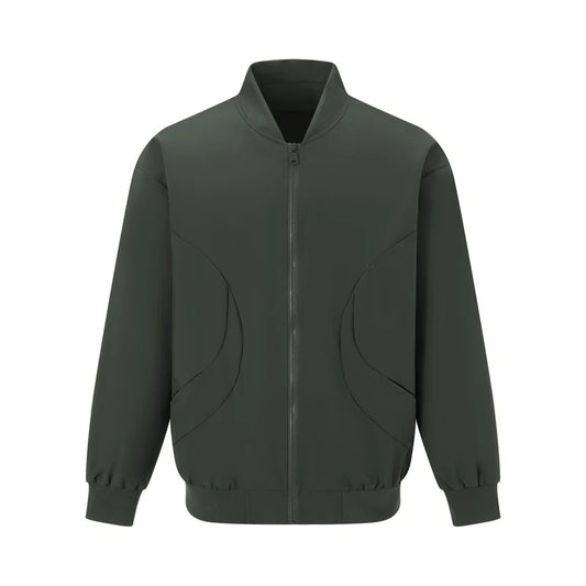 Men s Long Sleeve Baseball Jacket Solid Color Zip Up Stand Collar Casual Lightweight Coat