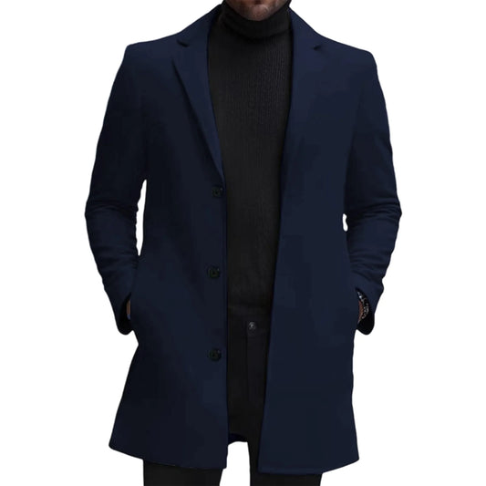 Men s Classic Wool Blend Pea Coat with Notched Lapel Collar and Single Button Closure - Stylish Mid-Length Winter Jacket for