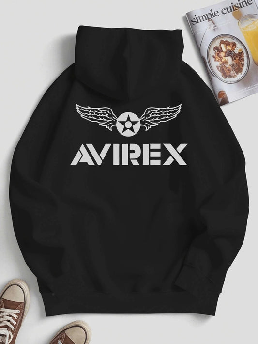 Avirex Hoodie Men Oversized ,wings Logo Graphic, Military Aviation Style Pullover Casual Top, Printed Patterns, Men Hoodies