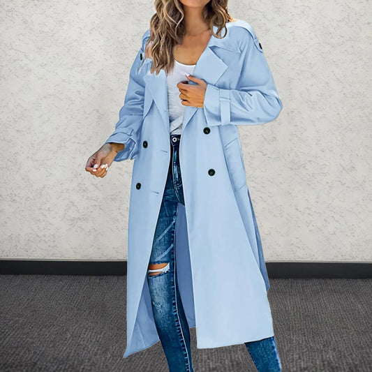 WoMen's Long Trench Coats Fashion Double-Breasted Solid Color Windbreaker With Belt Autumn Winter Female Cotton Blends Outwears