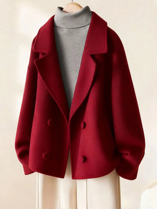 WoMen's Vintage Casual Notched Collar Double-Breasted Wool Blend Jacket, Autumn