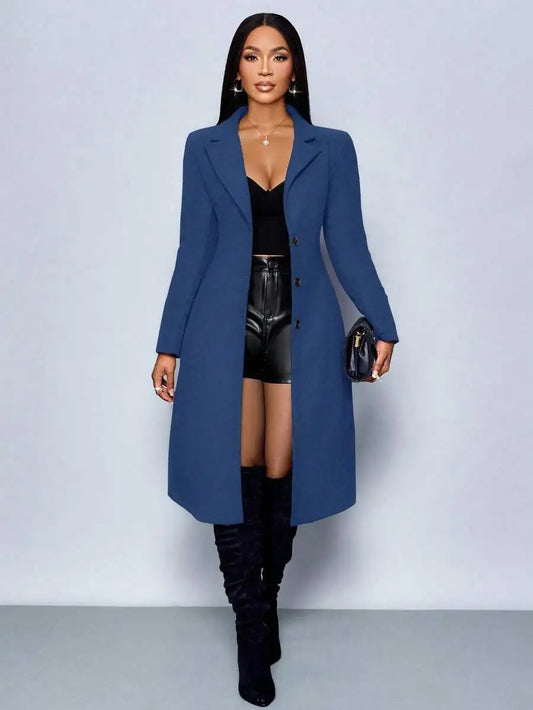Elegant Long Wool Blend Coat For Women, Slim Fit Winter Jacket With Notch Lapel, Perfect For Office Or Party