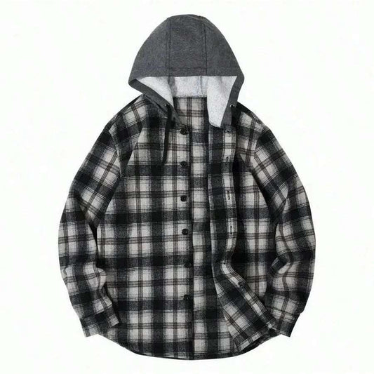 Flannel Hoodies For Men Casual Button Down PlaidLong Sleeve Lightweight Shirts