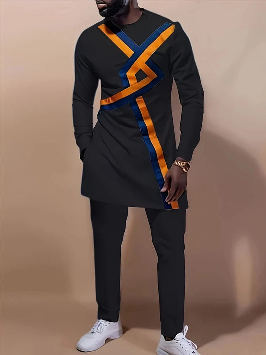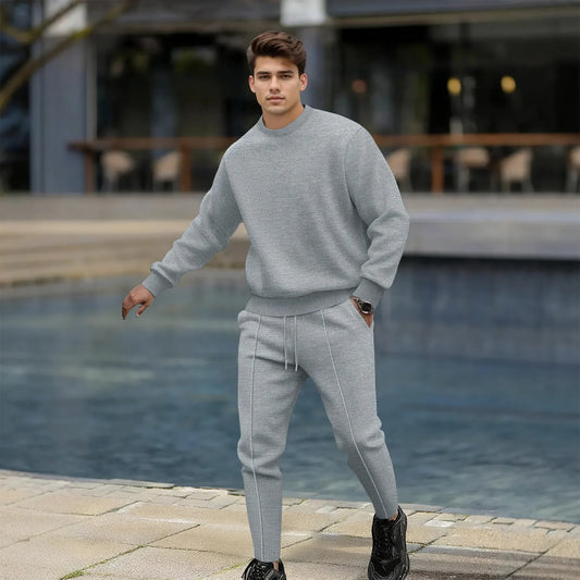 Men's Casual Long-Sleeved Two-Piece Set: Mid-Length Top and Trousers