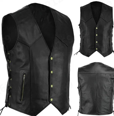 Men Solid Color Vest Motorcycle Fleet Punk Leather Vest Coat Sleeveless O-Neck Zipper Slim Jacket Autumn Work Coats Male Wear