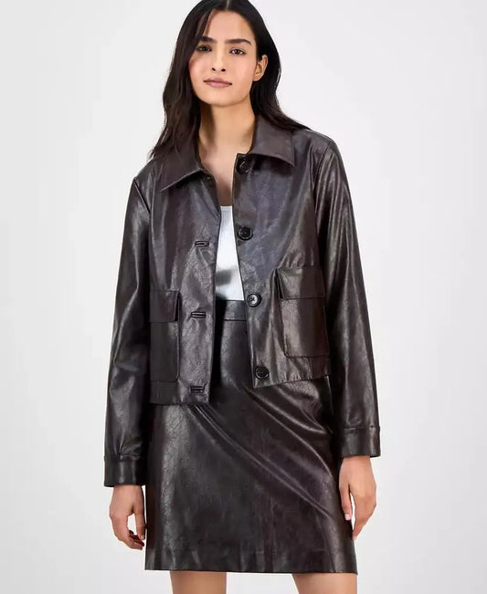 Anne Klein | Women's Faux Leather Front-Button Jacket