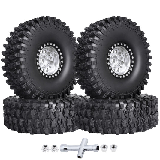 4pcs Hobbypark 1.9 Inch Beadlock Wheels and Tires Set for 1/10 Scale RC Crawler