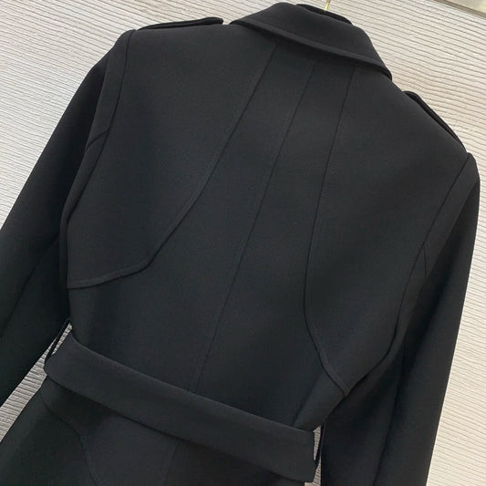 25 Autumn/Winter New Style WoMen's Fashion Letter-Printed Interior Leather Zippered Buttoned A-line Long Sleeve Collar Coat with