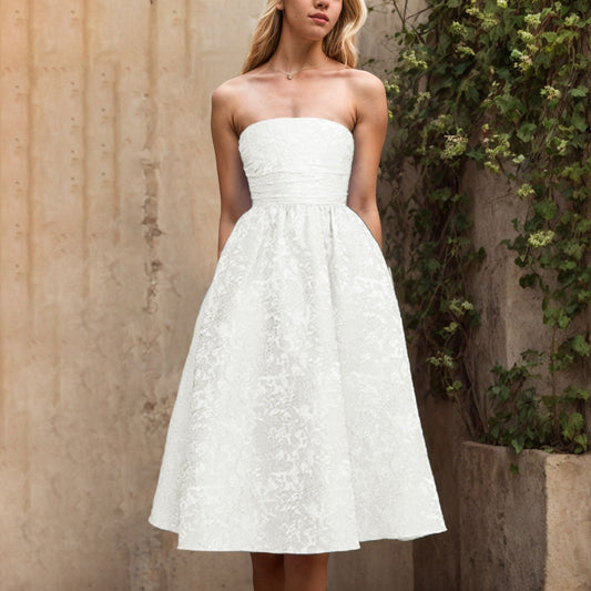 Strapless Party Dresses for WoMenummer Off Shoulder Jacquard Mid