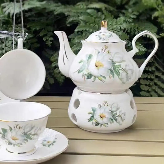 Elegant White Peony European-Style Tea Set: Perfect for Gifts, Mother's Day, Birthdays, and Special Occasions