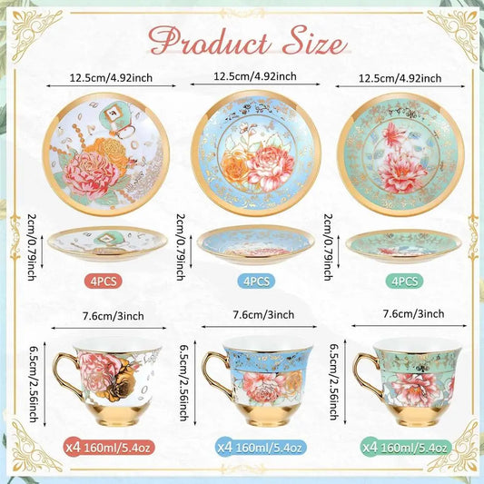 12-piece Teacup and Saucer Set for Elegant Tea Parties, Ideal for Birthdays, Church Events, and Mother's Day Celebrations
