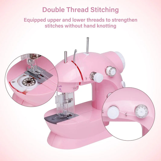 Beginner Sewing Machine with Table, Pedal & 42-Piece Kit, Portable 2-Speed for Kids Ages 8-12 in Peach Pink