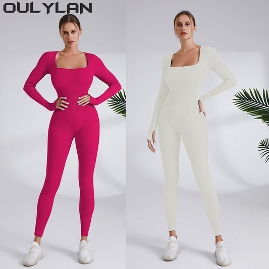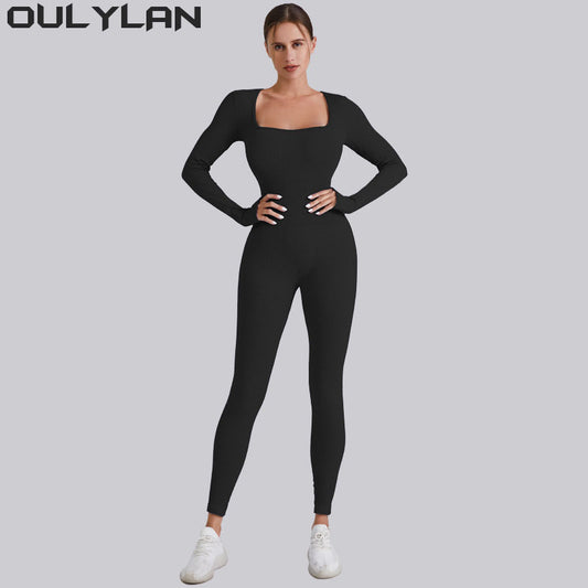 Oulylan Tracksuit Jumpsuit Gym Workout Yoga Clothes Fitness Long Sleeved One Pi
