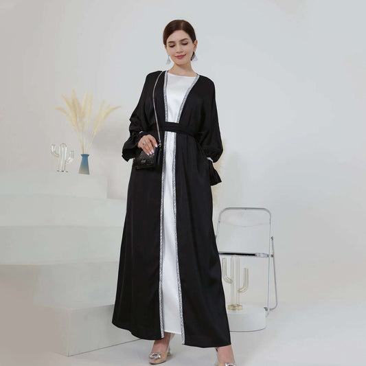 Loriya Wholesale New Style Traditional Muslim Clothing Satin Plain Abaya Solid Color Kaftan Women Muslim Dress Cardigan Abaya