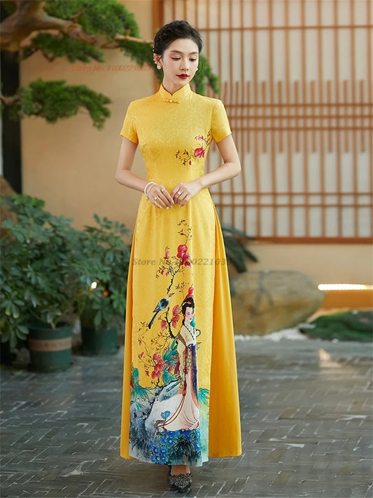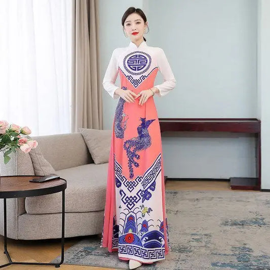 2026 vietnamese aodai dress improved cheongsam qipao national flower print qipao dress oriental banquet evening dress vestido