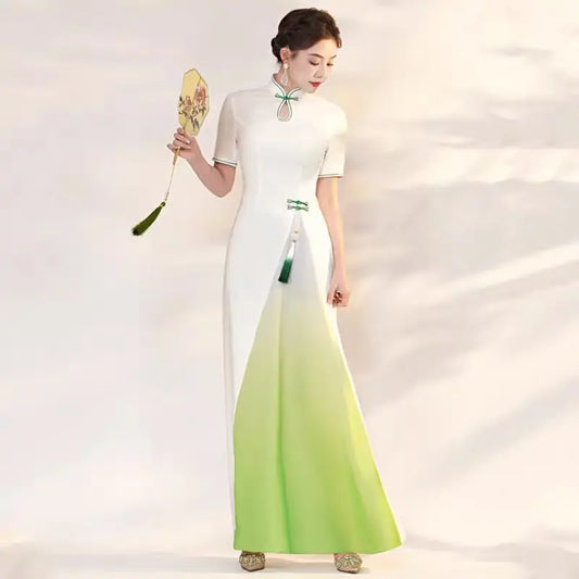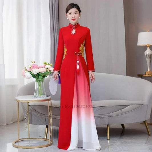 High End Dress Qipao Cheongsam Aodai Vietnamese New Performance Costume Dance Improvement Chinese Stage Long Dress Etiquette