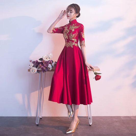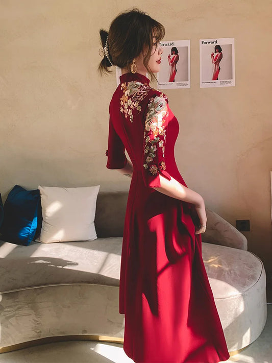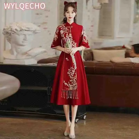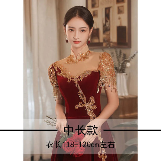 Chinese Style Bridal Toasting Cheongsam Dress Wind Red Traditional Qipao Dress Vintage Wedding Elegant Evening Party Dresses