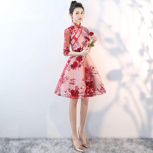 Party Evening Cheongsam Dress Oriental Chinese Style Woman Elegant Satin Qipao Sexy Wedding Prom Short Robe Retro Vestido S-3XL