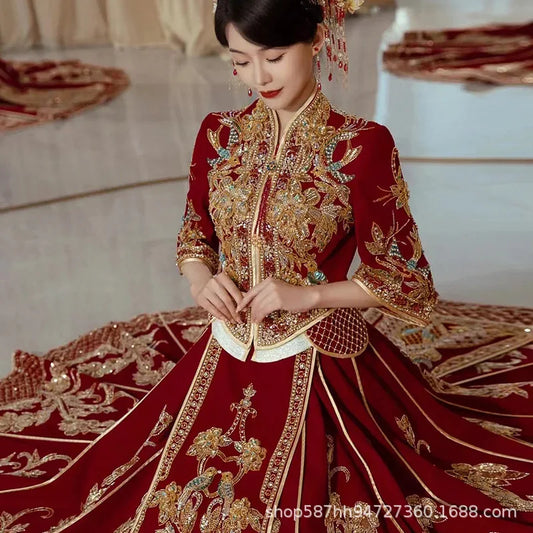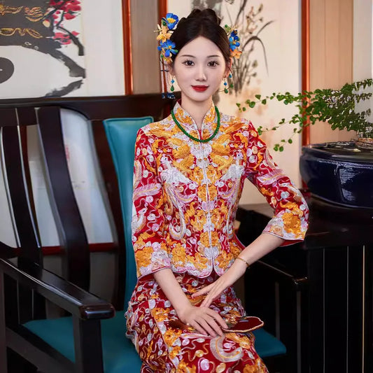 Yourqipao Dragon and Phoenix Gown Chinese Wedding Dress Xiuhe Bridam Dress China Traditioal Qipao Cheongsam