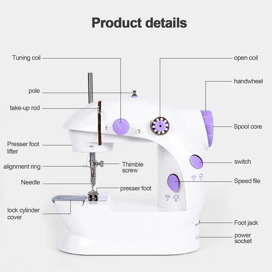 202A Home Mini Electric Sewing Machine with Expansion Board 99pcs Needlework Set US 110V Purple Simple sewing function