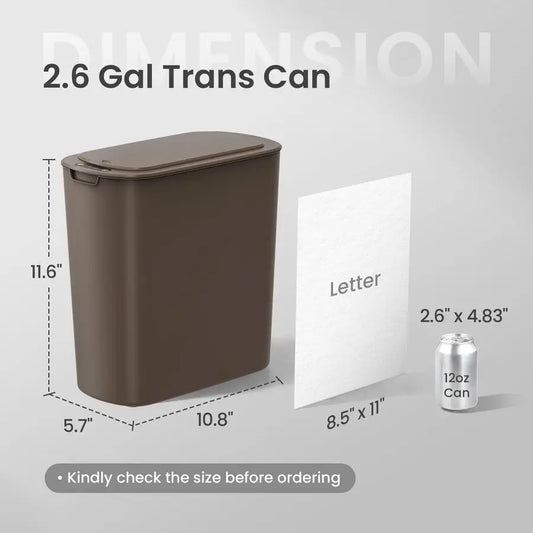 Automatic Motion Sensor Bathroom Trash Can with Lid, 2.6 Gallon Touchless Trash Bin, Smart Plastic Slim Garbage Can Small Brown