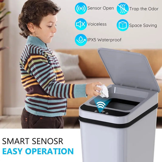 15/18L Intelligent Touchless Trash Can Waterproof Auto Motion Sensor Rubbish Can Quiet Wastebasket for Kitchen Bathroom Bedroom