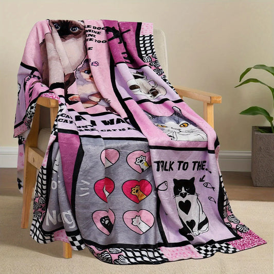 Kitten Pattern Gift Blanket Soft Flannel Sofa Blanket TV Throw, Memorial Gift One Piece