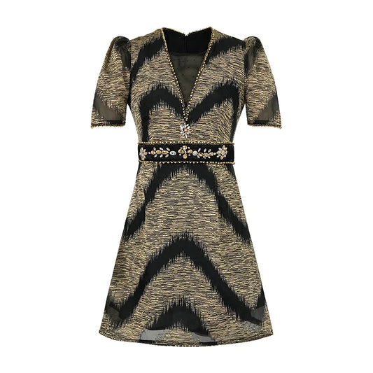 ZYHT 91100 Ladies Dress Casual Summer Black and Gold Prom Elegant Party Embroidered Short Dresses for African Women