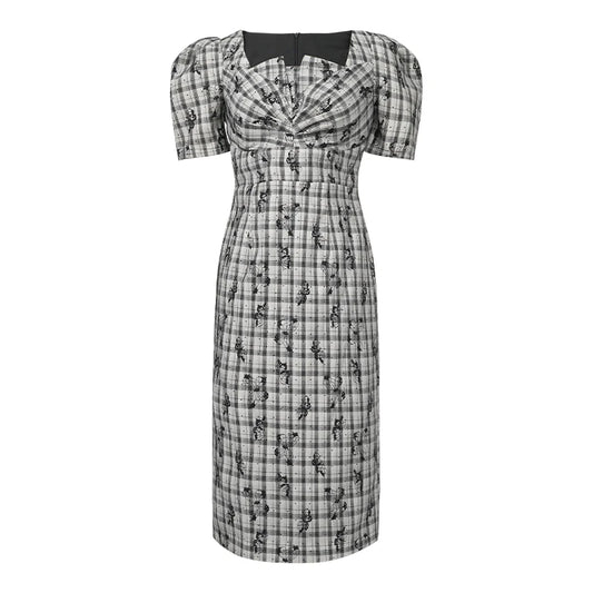 ZYHT 21303 Spring Summer Elegant Women Dress Office Pencil Dress Bodycon Ladies Short Sleeve Puff Sleeve Dress