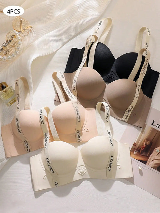 4pcs/Set Women Half-Cup Bras, Wireless Lift & Push Up Bra For Small Bust, Invisible Seamless Backless