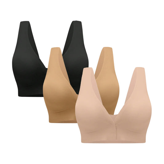 3 Pcs Women' Deep V Wire-free Bras Wide Strap Front Closure Sexy Push Up Seamless Bralettes For Cup A B C D