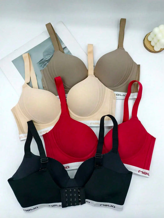 4-Pack Women's Underwear Bra Solid Color Thin Style Big Chest Small No Steel Ring Seamless