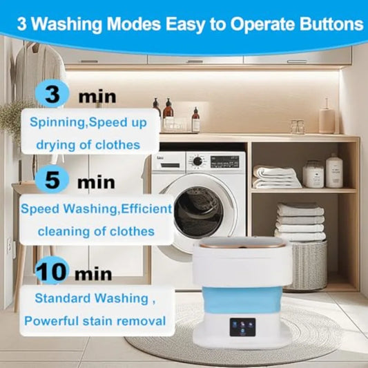 Mini Portable Washing Machine, 9L, 3 Modes, Blue Light Disinfection, Foldable, for Underwear, Socks, Baby Clothes, Travel & Camp