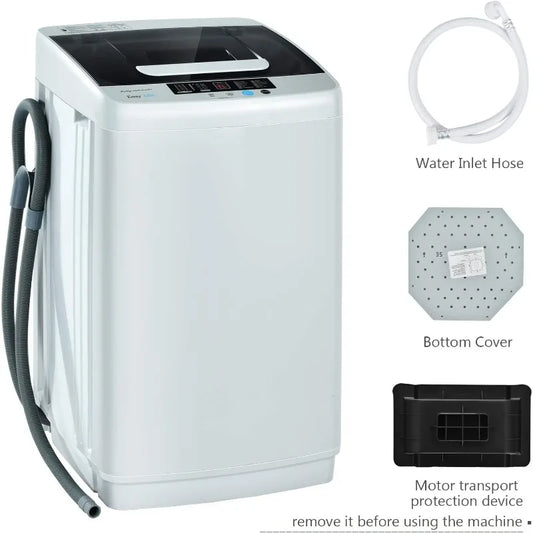 Compact Portable Washing Machine with 11Lbs Capacity FullAutomatic Operation 8 Wash Programs LED Display 10 Water Level Setting
