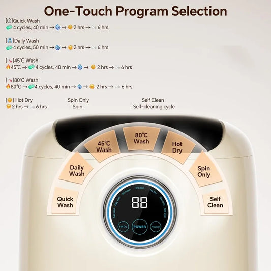 Fully Automatic Mini Washing Machine with Heated Wash Spin Dry Thermal Drying 7L 1kg Capacity Portable for Underwear Socks Baby