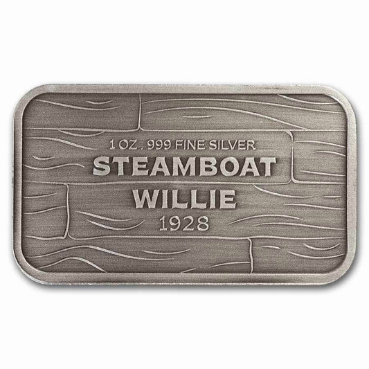 1 oz Silver Bar - Steamboat Willie (Antiqued)