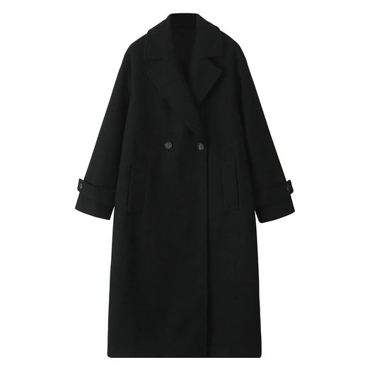 Long coat for autumn and winter, double-breasted wool wind jacket reaching the knees