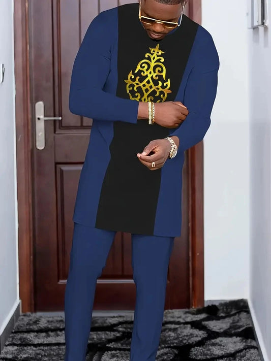 2-piece set, European and American Men's fashionable sports long-sleeved top and long pants set