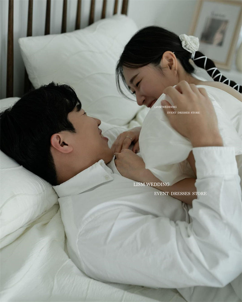 LISM Wedding Dresses Square Collar Short Puff Sleeves A-Line Knee Length