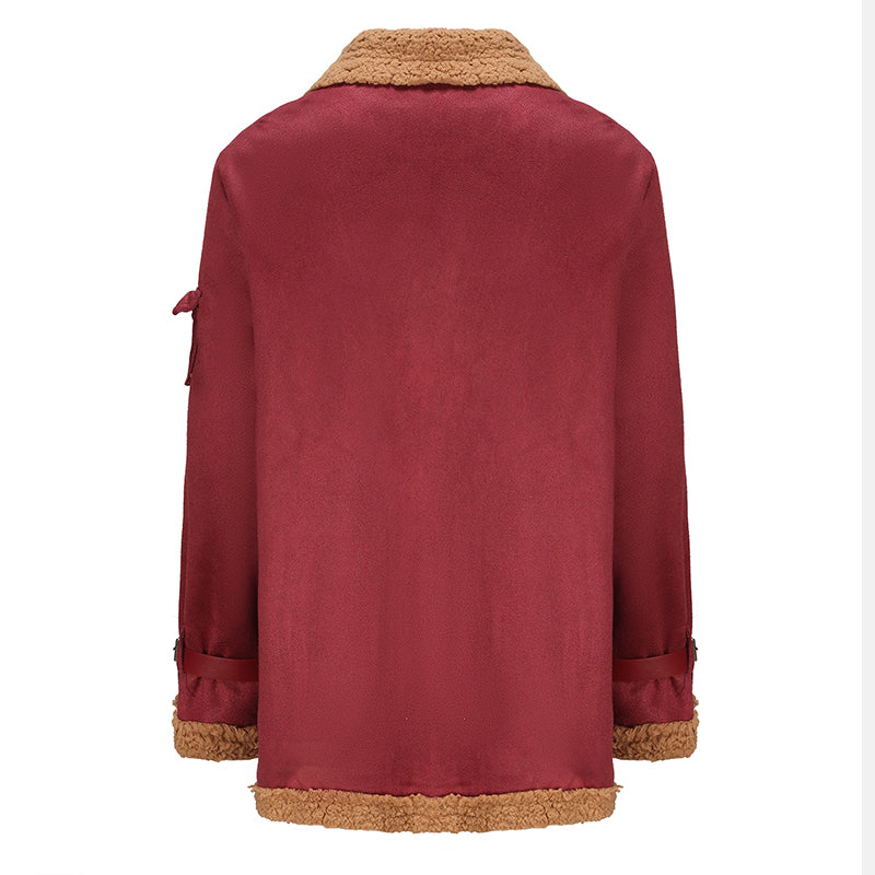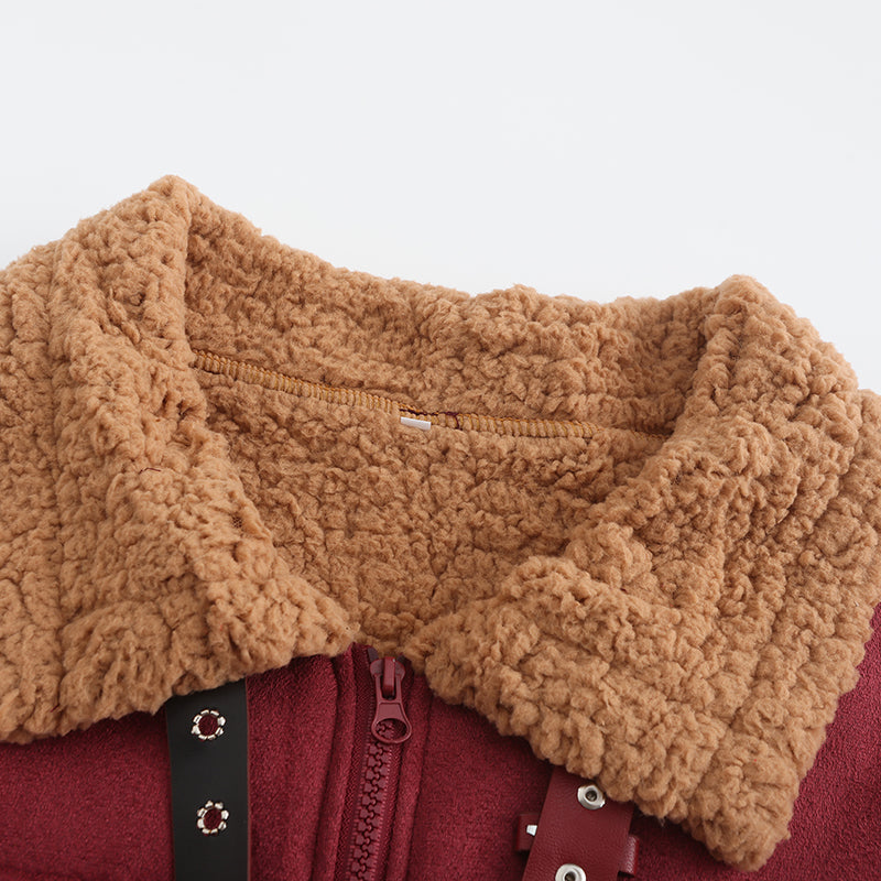 Men Leather Jacket with Woolen Fleece Lining Zip Up Closure Long Slee