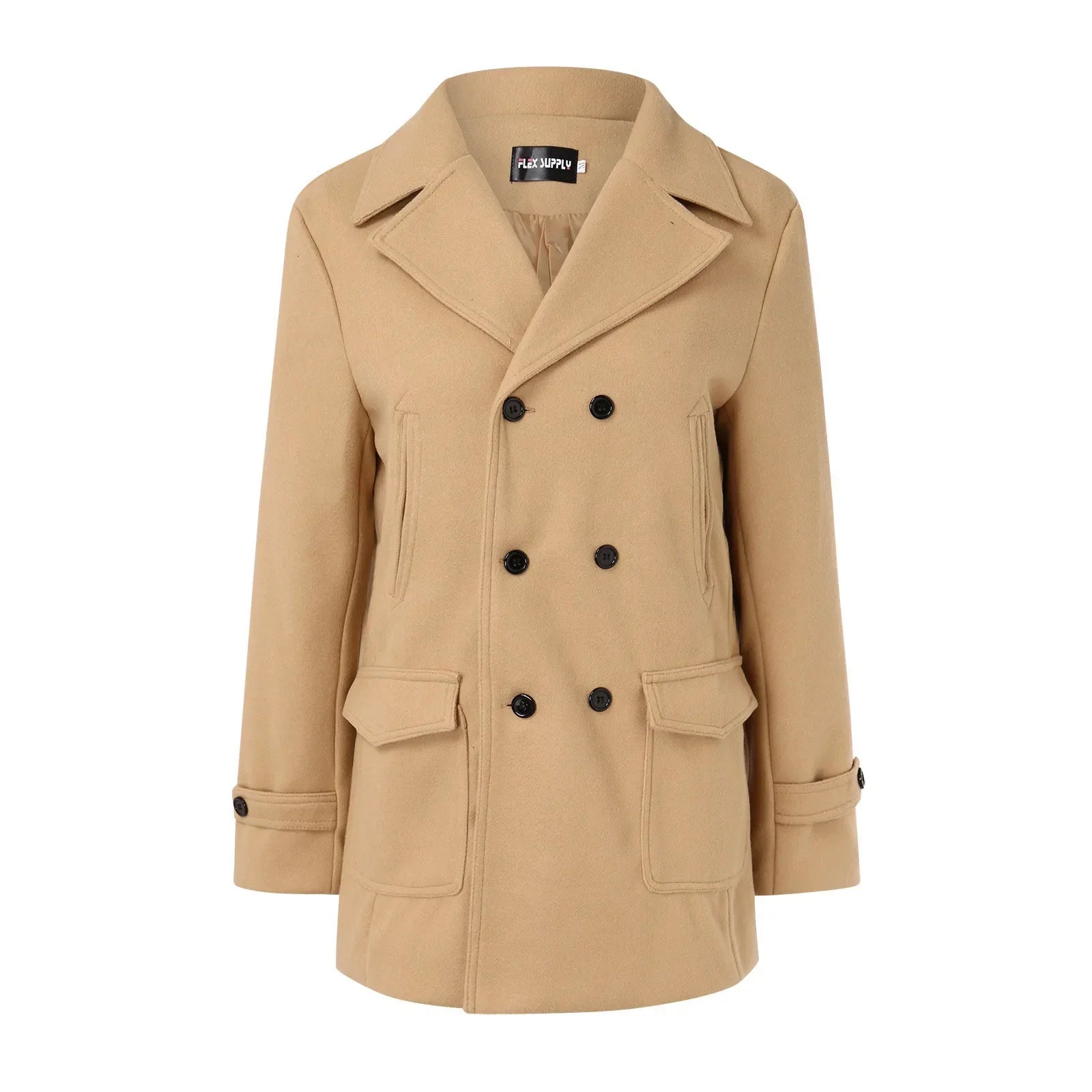 Unisex Long Wool Coat Trend Fashion Double-Breasted Elegant Vintage Thicken Sheepskin Jacket Men's Flannel Coat
