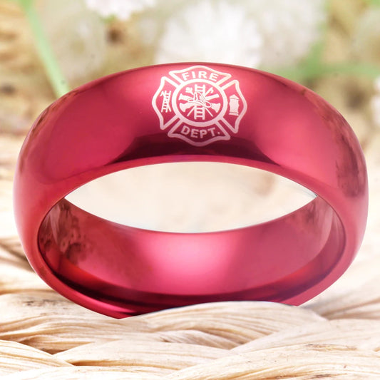 Firefighter Design Fireman Rings Fire Police Ring Men's Black Tungsten Ring With Red Groove CZ Anniversary Gift Ring